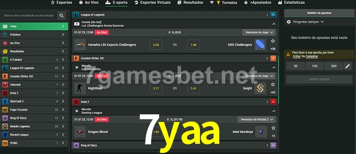 O 7yaa oferece uma grande seleção de opções de apostas em e-sports com probabilidades competitivas